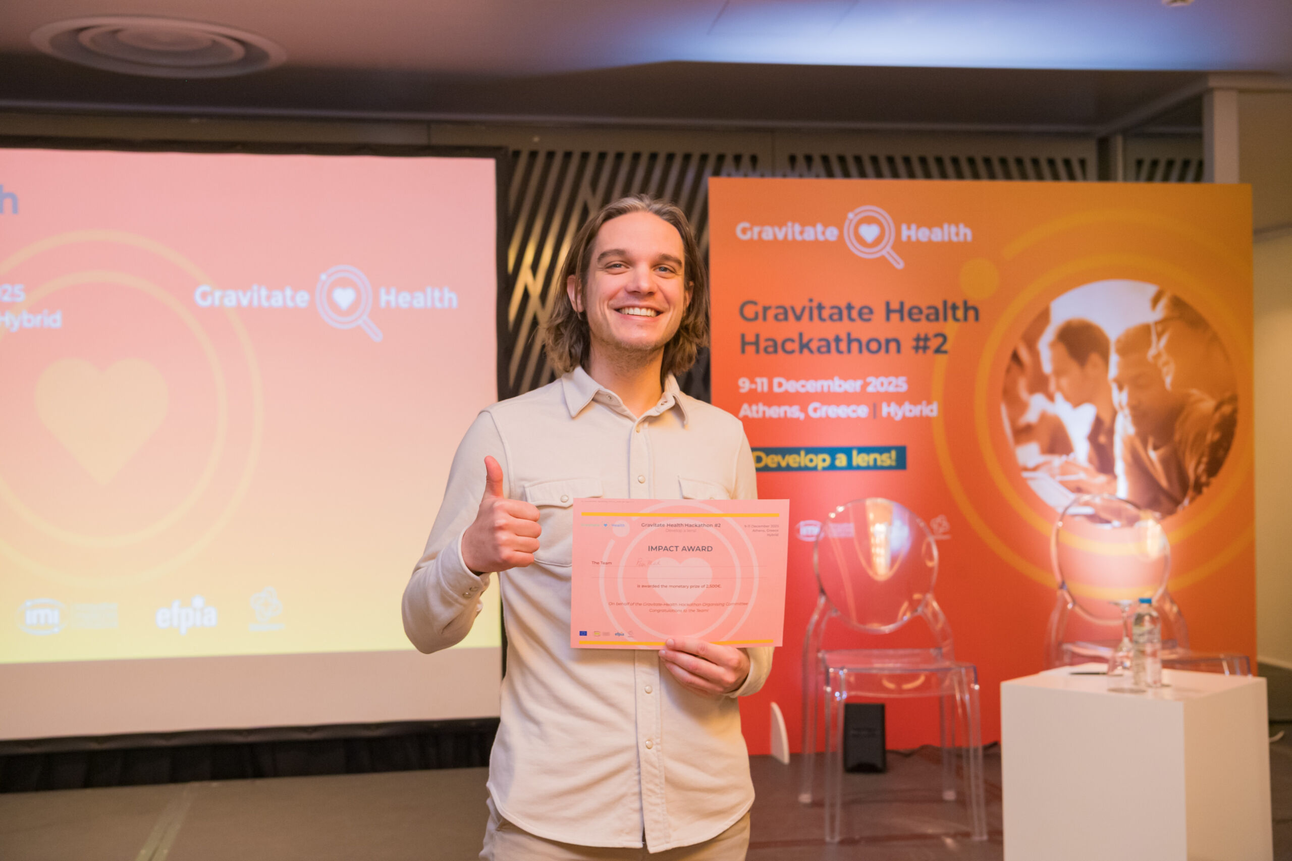 PeerMed Team, with members from The Netherlands & Ukraine, gained the Impact Award for their strong co-creation approach, and extending the Lens library through interactive elements such as the quiz lens & gamification features. The team provided meaningful additions, introducing new types of lenses with clear user engagement and impact potential.