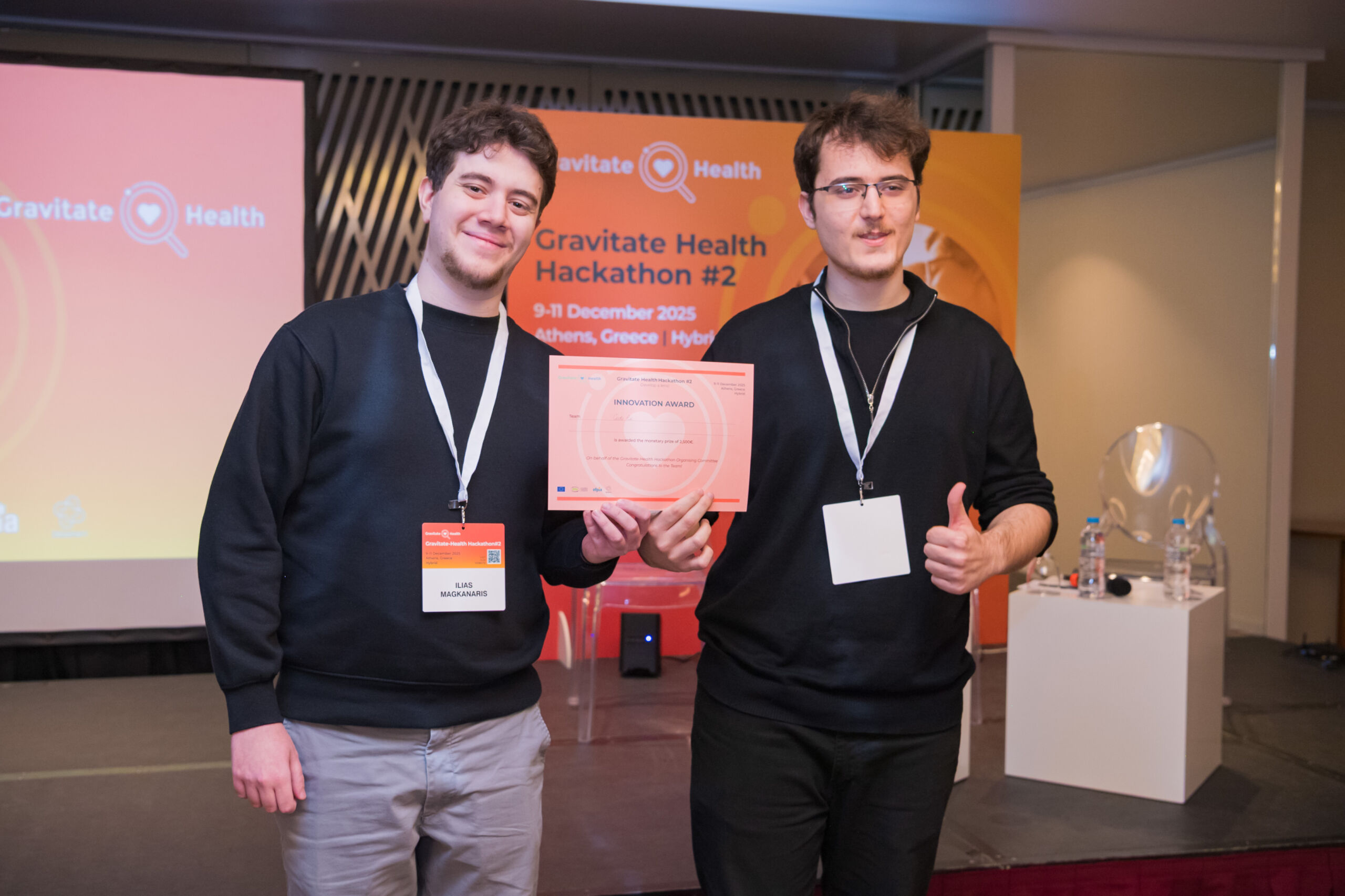 CodeRx Team, with two members from Greece, gained the Innovation Award for their use of Large Language Models (LLMs) and the way these were applied within the Gravitate Health framework. Technical depth and novelty in the team’s approach set their work apart.